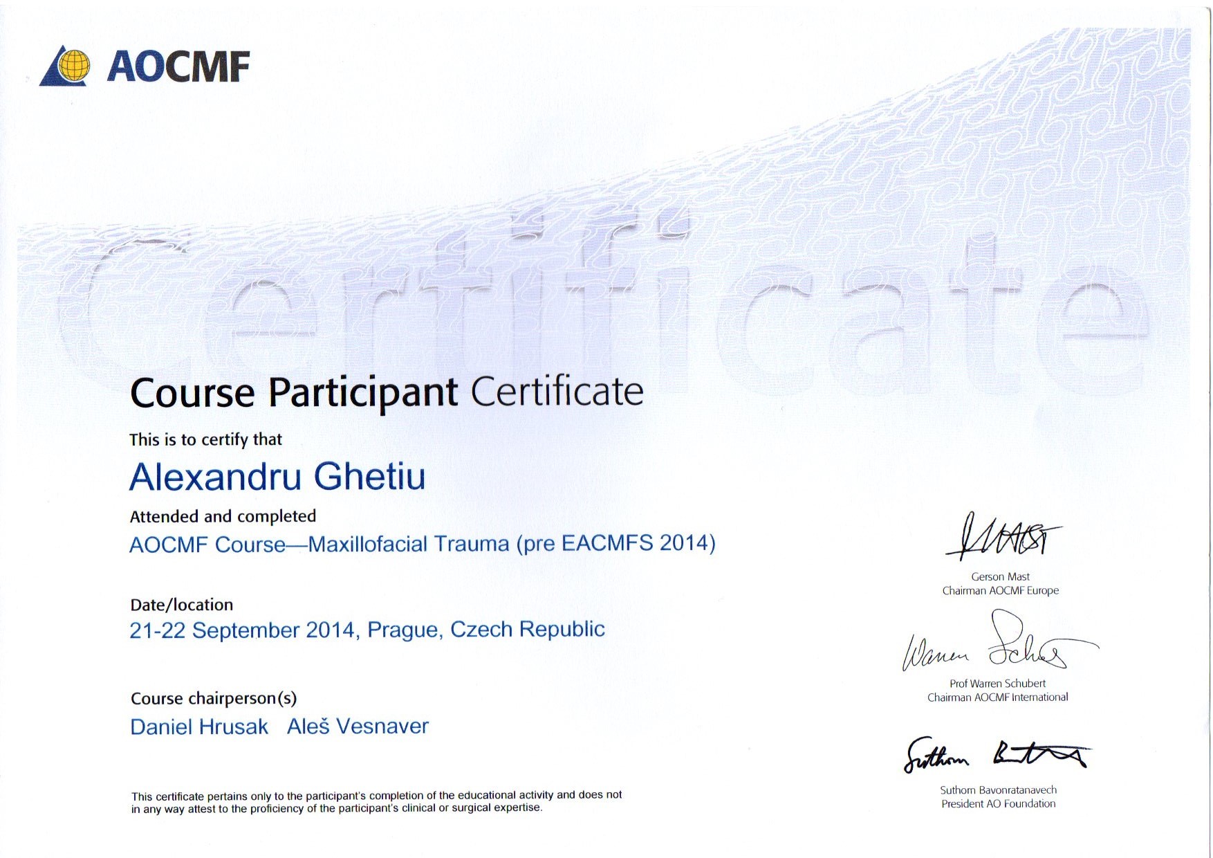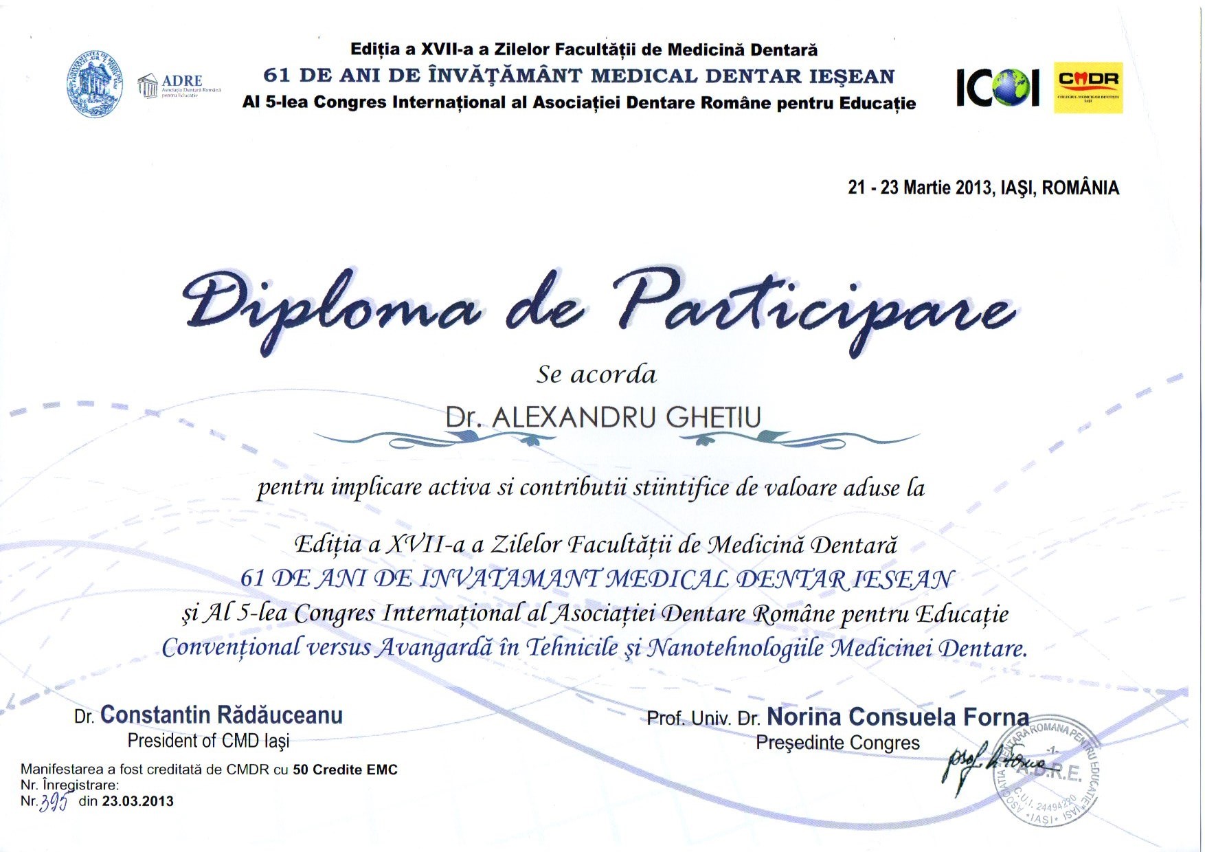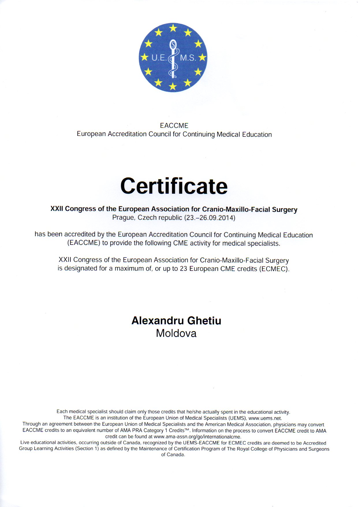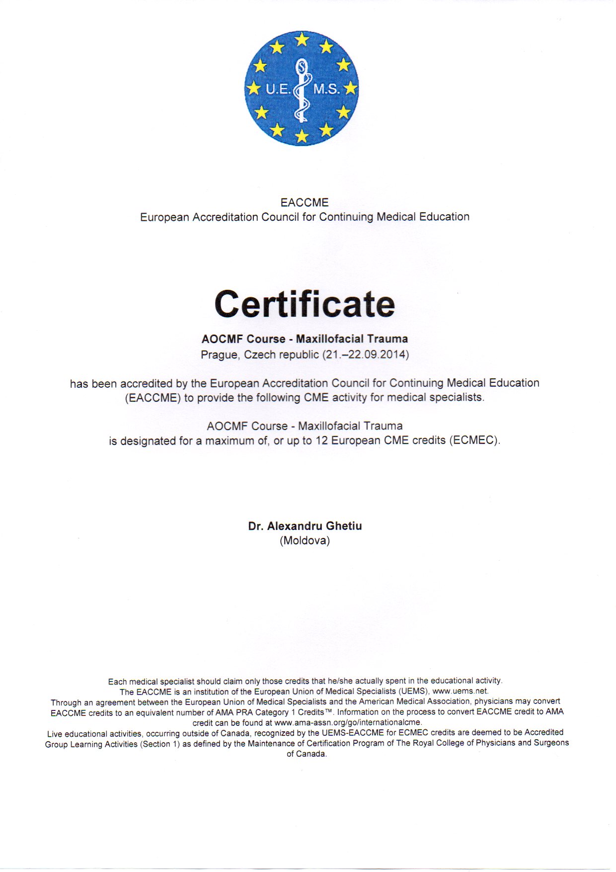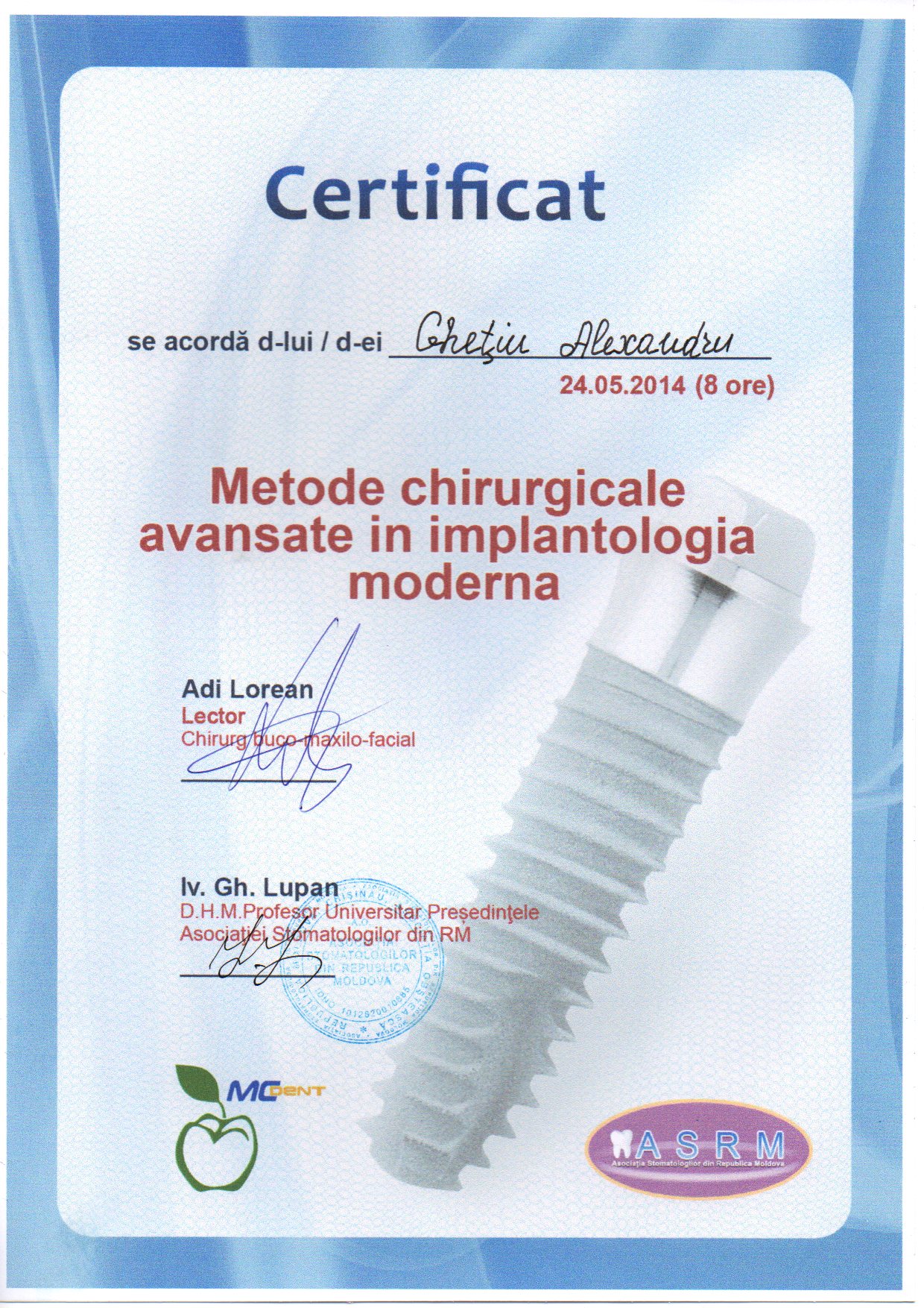 2001-2004 – Государственный Университет Медицины и Фармакологии им. Николая Тестемицану, Стоматологический факультет, резидент.
