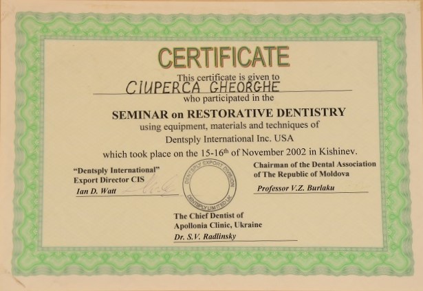 2002-2003 – Clinica stomatologică „Fala-Dental”, medic-stomatolog.
