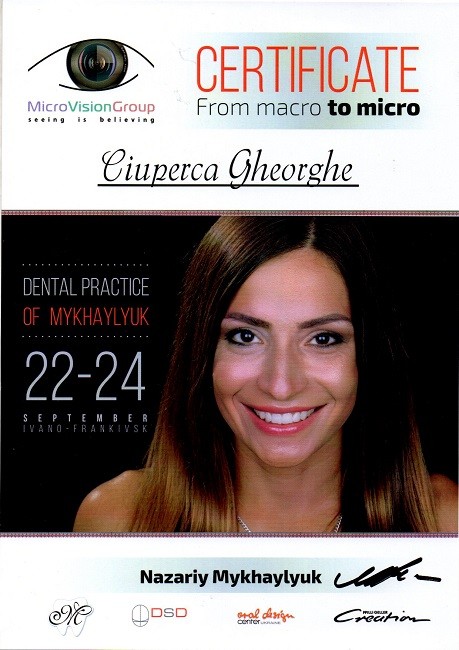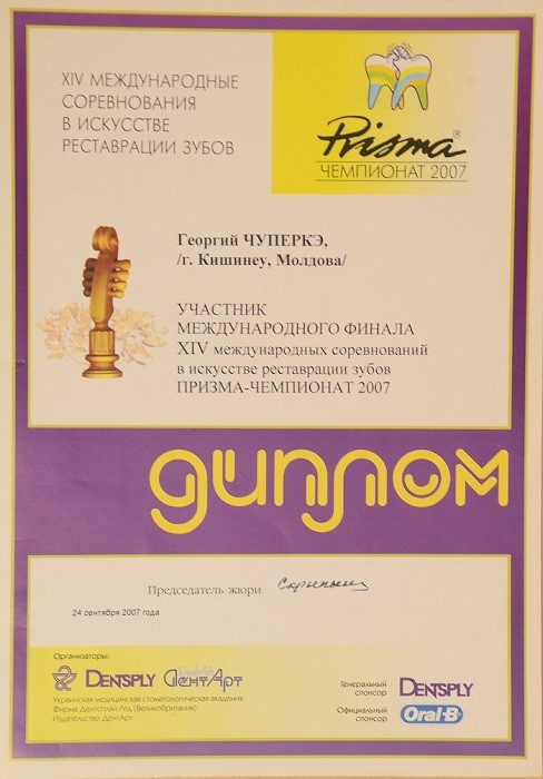 Numeroasele cursuri și munca asiduă au dus la participarea la prestigiosul concurs internațional între stomatologi în domeniul restaurării dinților frontali „Prisma-campionat” și obținerea următoarelor premii: