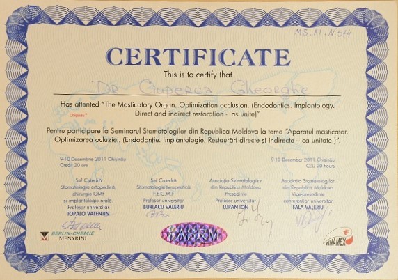Activând peste 20 de ani în domeniul anesteziologiei şi fiind anesteziologul de frunte din cadrul Spitalului Clinic Republican, pot declara cu certitudine că dotarea clinicii Jorge Dental Studio corespunde tuturor cerinţelor moderne pentru efectuarea anesteziei adecvate, calitative şi inofensive. Prin urmare, declar cu autoritate că tratamentul sub anestezie la Jorge Dental Studio este absolut fără pericol.