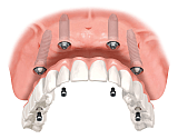 - имплантаты дают возможность протезирования при полном отсутствии зубов на челюсти удобными несъёмными конструкциями;